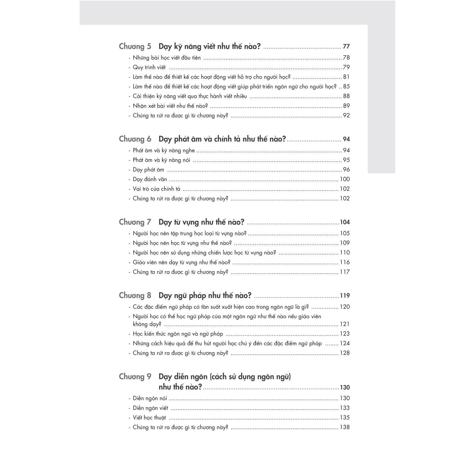 Cuốn sách cung cấp những kiến thức cốt lõi và kỹ thuật giảng dạy thiết yếu mà mỗi giáo viên EFL cần biết, là những nội dung bao quát nhiều khía cạnh quan trọng của việc giảng dạy như: