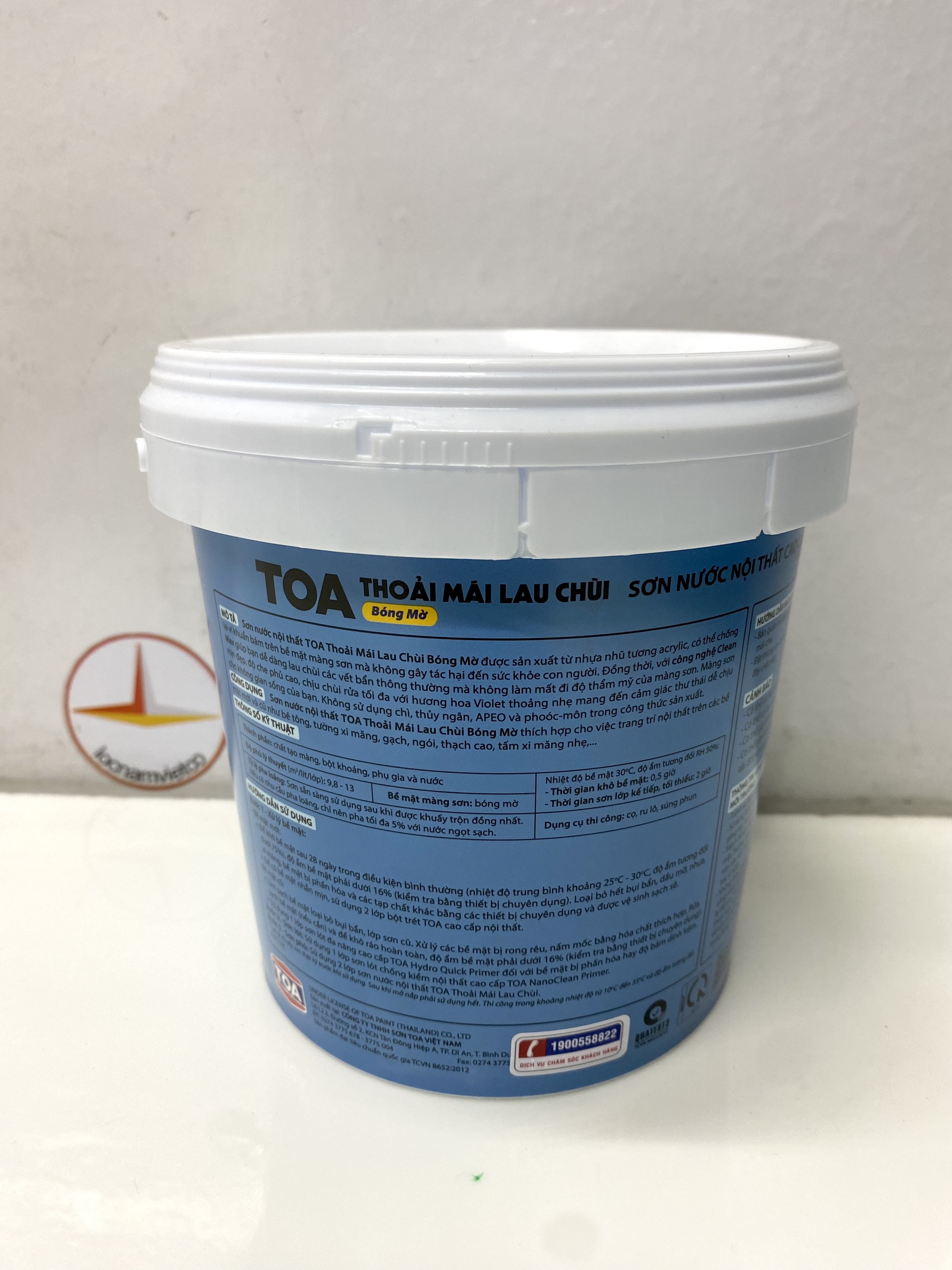 Sơn nước nội thất cao cấp Toa Nanoclean màu xám 8268_ 15L (HÀNG PHA MÀU, VUI LÒNG KHÔNG ĐỔI HOẶC TRẢ HÀNG) - Được chế tạo từ nhựa acrylic nguyên chất với công nghệ tiên