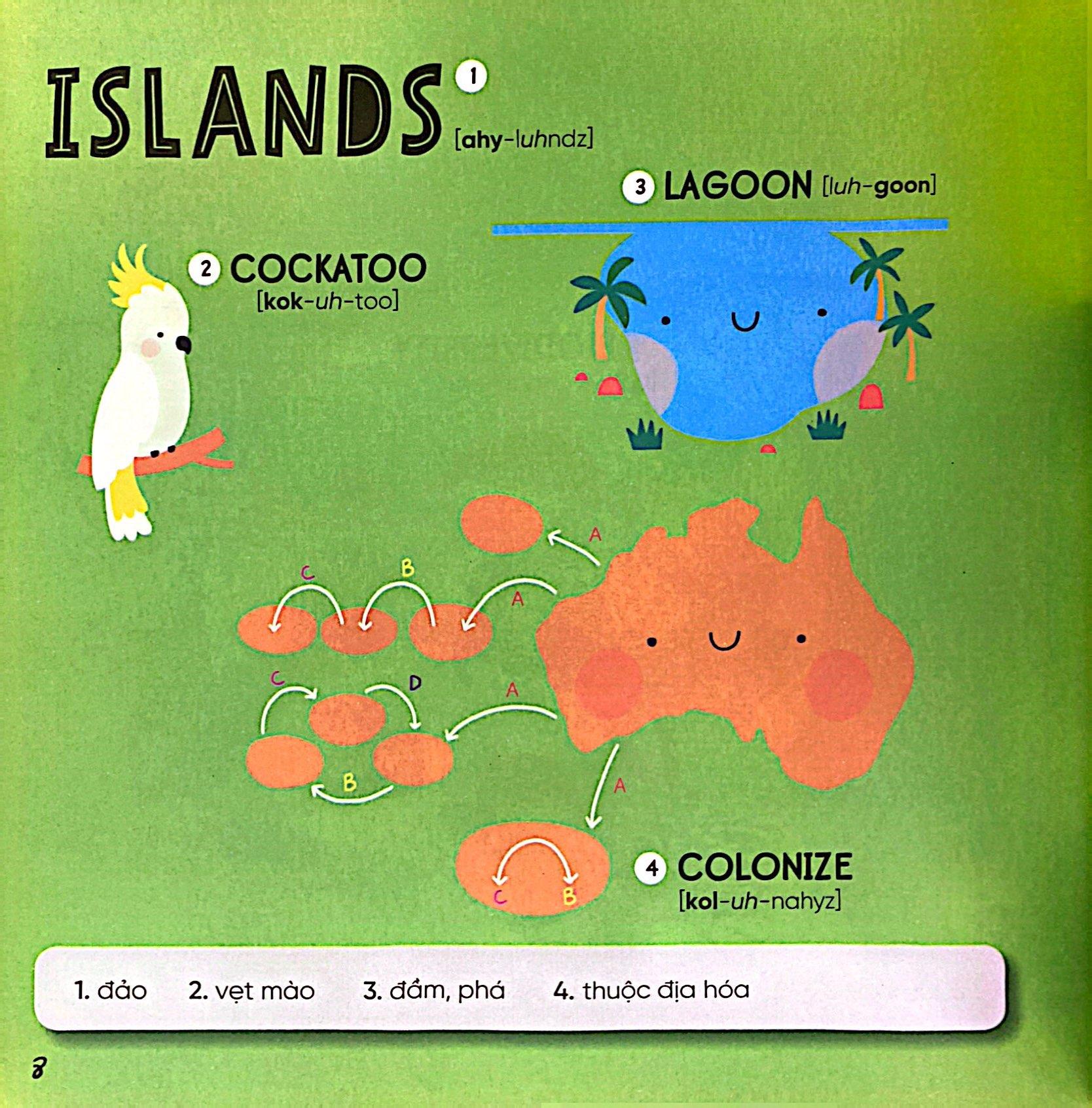 • nghĩa tiếng Việt của từ kèm phiên âm theo phương pháp phonetic respelling giúp các bạn nhỏ dễ hình dung được cách phát âm;