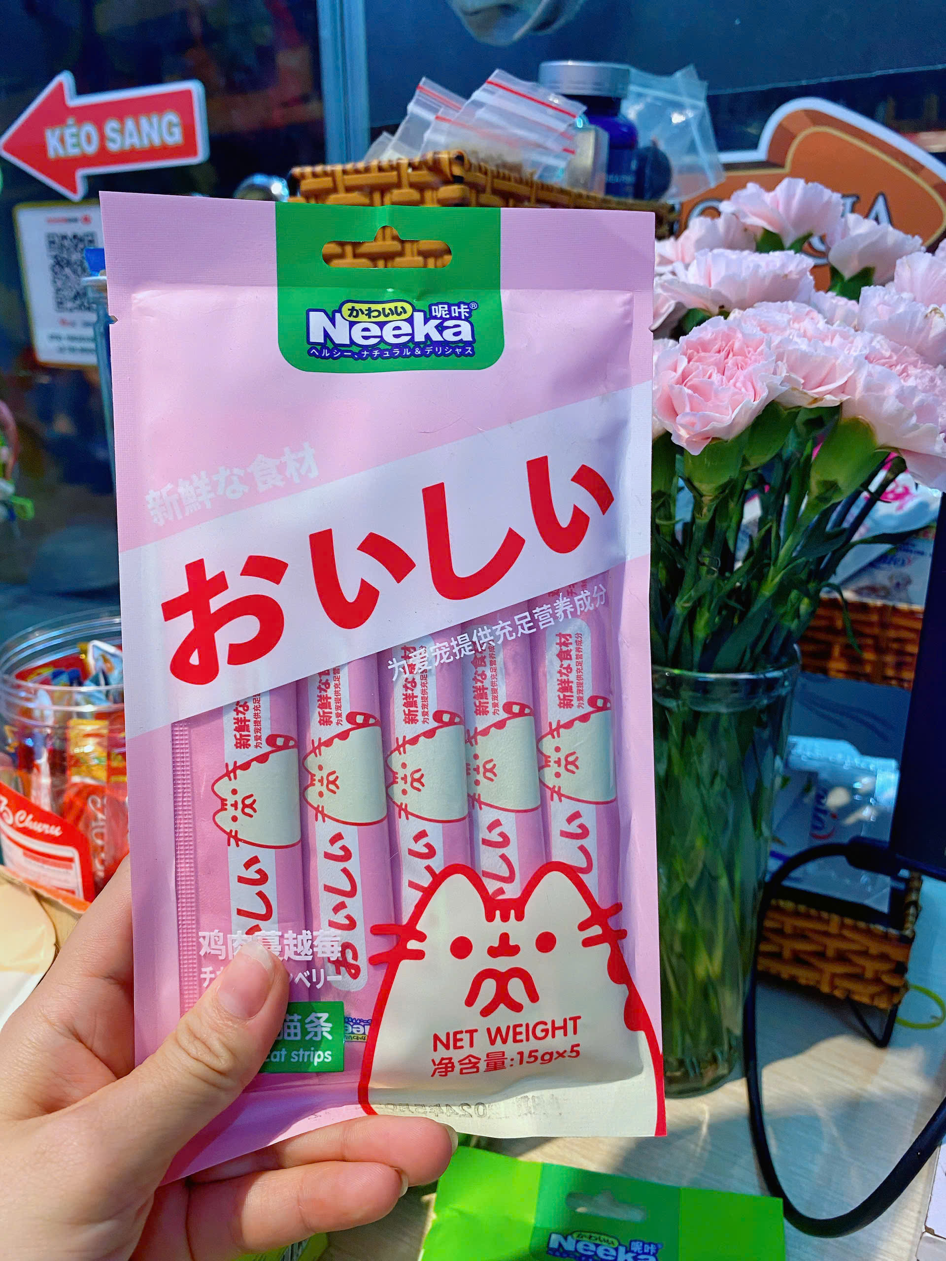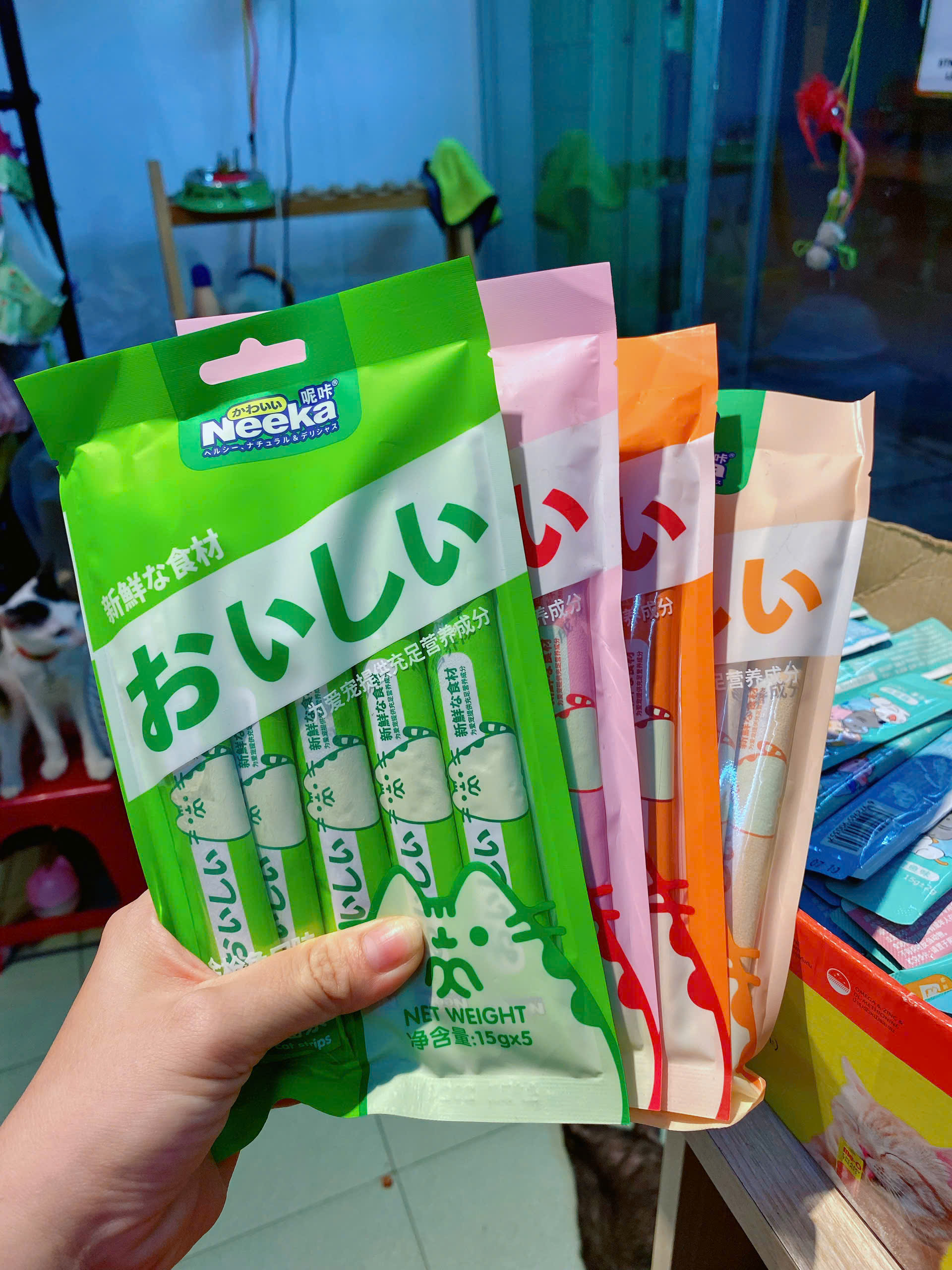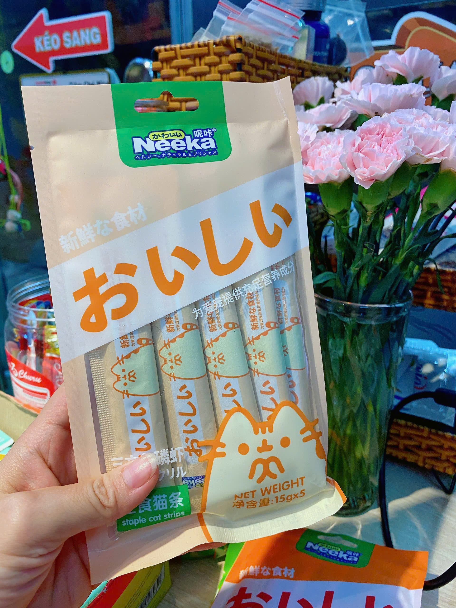 THÔNG TIN SẢN PHẨM - Trọng lượng: 15g x 5 thanh - Quy cách đóng gói: gói 5 thanh - Phân loại: Súp thưởng NEEKA vỉ có 4 vị phù hợp với nhu cầu của các boss Vàng - Cá hồi & Nhuyễn thể Hồng - Gà & Nam việt quất Xanh lá - Cá ngừ Cam - Gà & Vịt Súp thưởng TAULES Xanh dương - Cá ngừ & cá thu Hồng - Cá hồ Xanh chuối - Thịt vịt & quả lê Cam - Gà & Vịt THÀNH PHẦN SẢN PHẨM - Nguyên liệu: thịt gà, vịt, cá, gan gà, súp gà, tinh bột sắn - Thành phần phụ gia: taurine, vitamin A, B, B2, C, B12, D3, E, K3, D-canxi pantothenate, nicotinamide & acid folic - Giá trị dinh dưỡng (Tính theo chất khô): Đạm thô >=28% Chất béo thô >=9,0% Chất xơ thô 9,0% Tro thô <=10,0% Độ ẩm <=88% Canxi >=1% Photpho >=0,8% Clorua hòa tan trong nước >=0,3% Taurine >=0,2% HƯỚNG DẪN SỬ DỤNG & BẢO QUẢN - Cho ăn trực tiếp với lượng vừa đủ hoặc trộn vào hạt, pate - Không nên cho ăn nhiều quá - Bảo quản nơi khô ráo, tránh ánh nắng. - Hạn sử dụng: 24 tháng - NSX: in trên bao bì