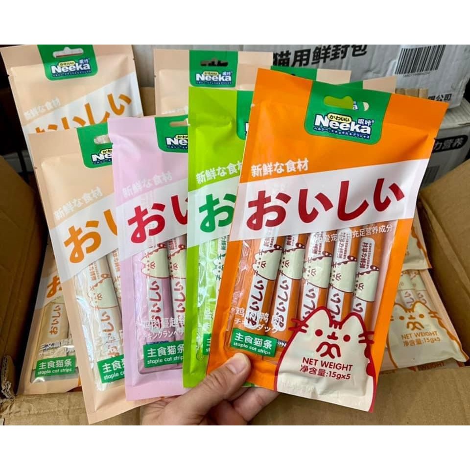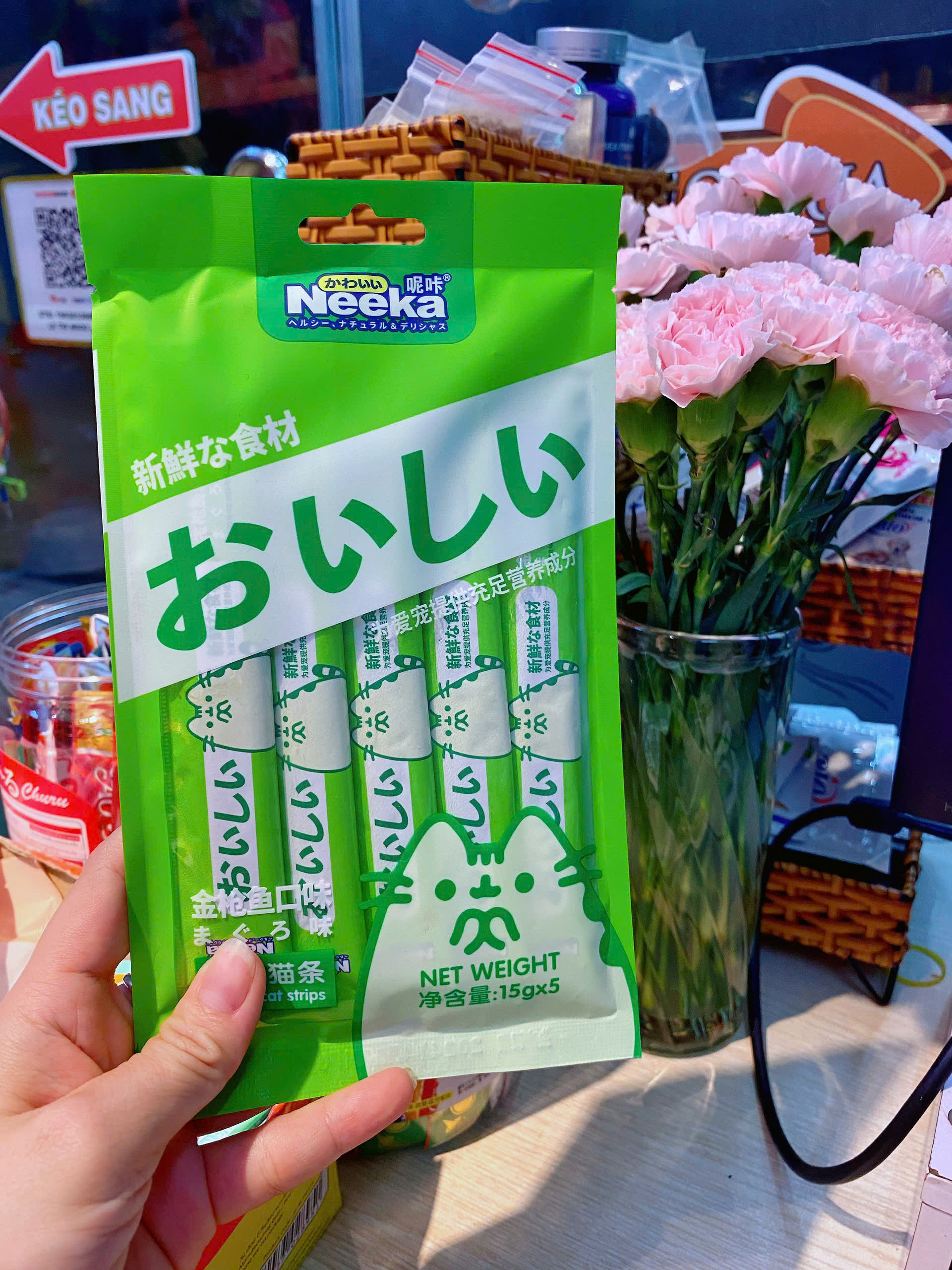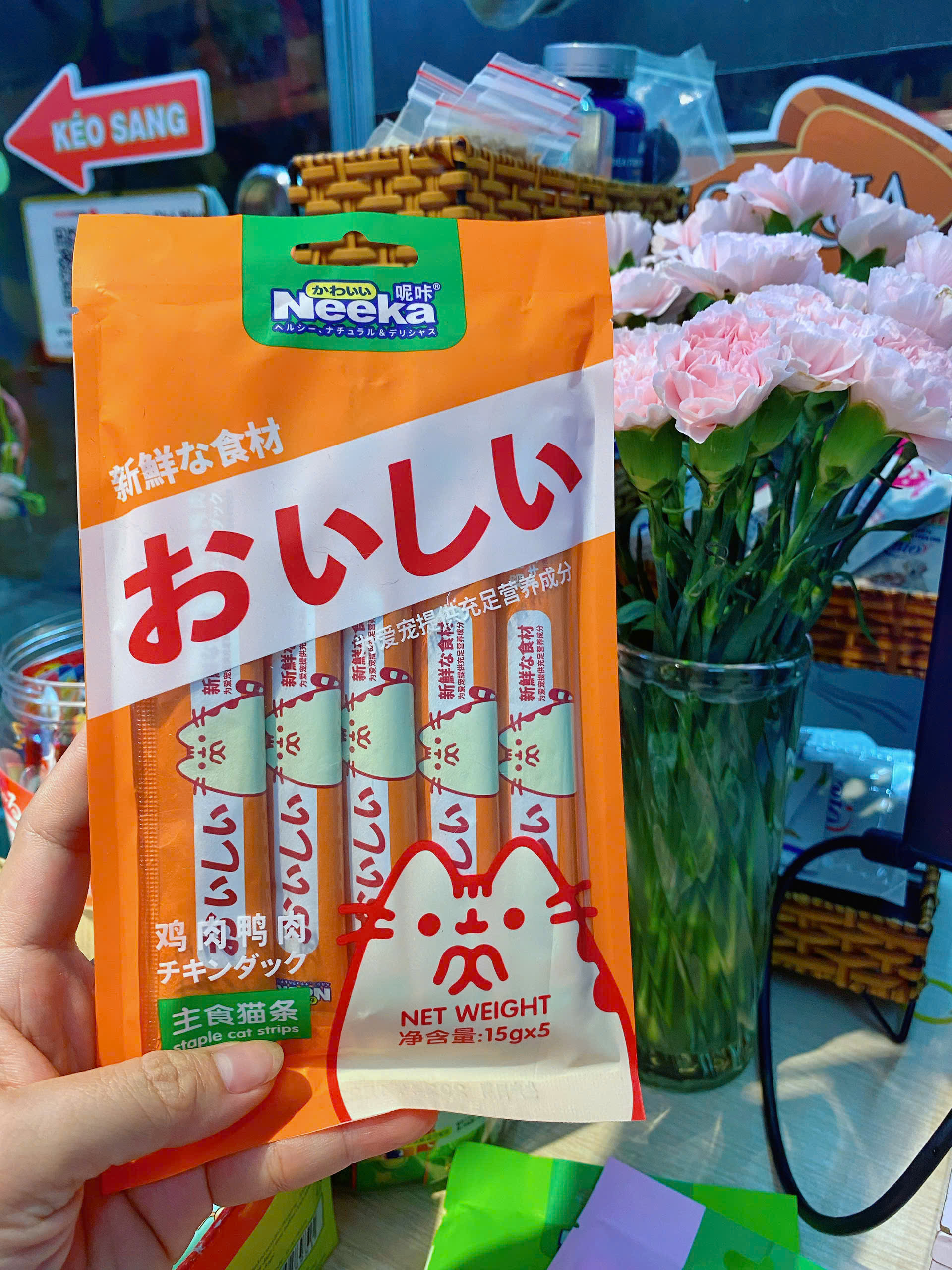 THÔNG TIN SẢN PHẨM - Trọng lượng: 15g x 5 thanh - Quy cách đóng gói: gói 5 thanh - Phân loại: Súp thưởng NEEKA vỉ có 4 vị phù hợp với nhu cầu của các boss Vàng - Cá hồi & Nhuyễn thể Hồng - Gà & Nam việt quất Xanh lá - Cá ngừ Cam - Gà & Vịt Súp thưởng TAULES Xanh dương - Cá ngừ & cá thu Hồng - Cá hồ Xanh chuối - Thịt vịt & quả lê Cam - Gà & Vịt THÀNH PHẦN SẢN PHẨM - Nguyên liệu: thịt gà, vịt, cá, gan gà, súp gà, tinh bột sắn - Thành phần phụ gia: taurine, vitamin A, B, B2, C, B12, D3, E, K3, D-canxi pantothenate, nicotinamide & acid folic - Giá trị dinh dưỡng (Tính theo chất khô): Đạm thô >=28% Chất béo thô >=9,0% Chất xơ thô 9,0% Tro thô <=10,0% Độ ẩm <=88% Canxi >=1% Photpho >=0,8% Clorua hòa tan trong nước >=0,3% Taurine >=0,2% HƯỚNG DẪN SỬ DỤNG & BẢO QUẢN - Cho ăn trực tiếp với lượng vừa đủ hoặc trộn vào hạt, pate - Không nên cho ăn nhiều quá - Bảo quản nơi khô ráo, tránh ánh nắng. - Hạn sử dụng: 24 tháng - NSX: in trên bao bì
