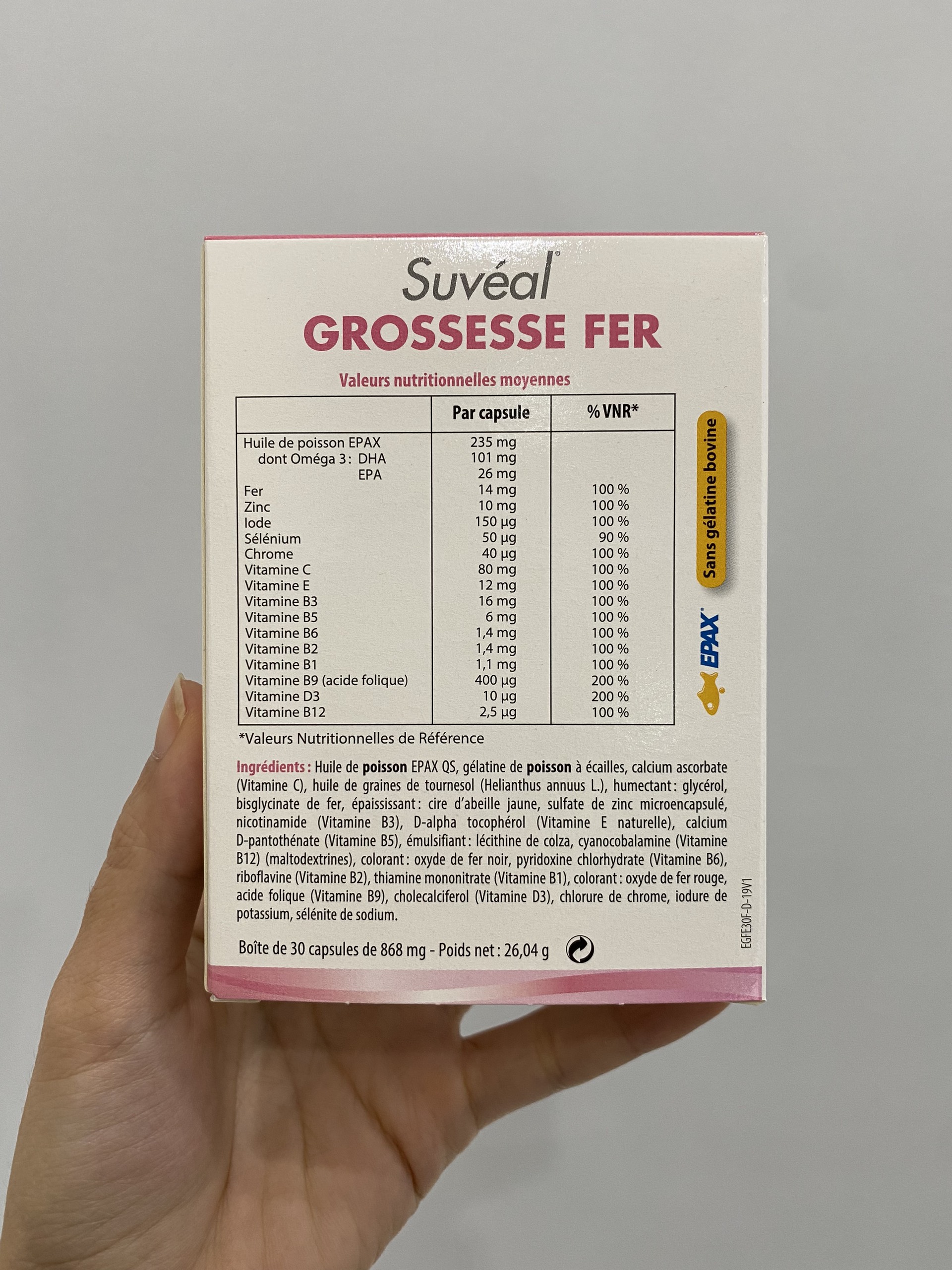 ✨ Suvéal Grossesse - Fer: Vitamin Tổng Hợp Cho Bà Bầu Cao Cấp Từ Pháp, Bổ Sung Đầy Đủ Vitamin Khoáng Chất, Ngăn Ngừa Dị Tật Thai Nhi, Tiền Sản Giật Và Tiểu Đường Thai Kỳ, Không Gây Táo Bón