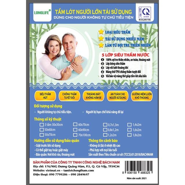 Tấm lót chống thấm cho người già/miếng lót chống thấm cho người lớn LONGLIFE là tấm lót 5 lớp sợi tre cao cấp lần đầu tiên và duy nhất được sản xuất tại Việt Nam bởi Công ty TNHH Bách Nam ():