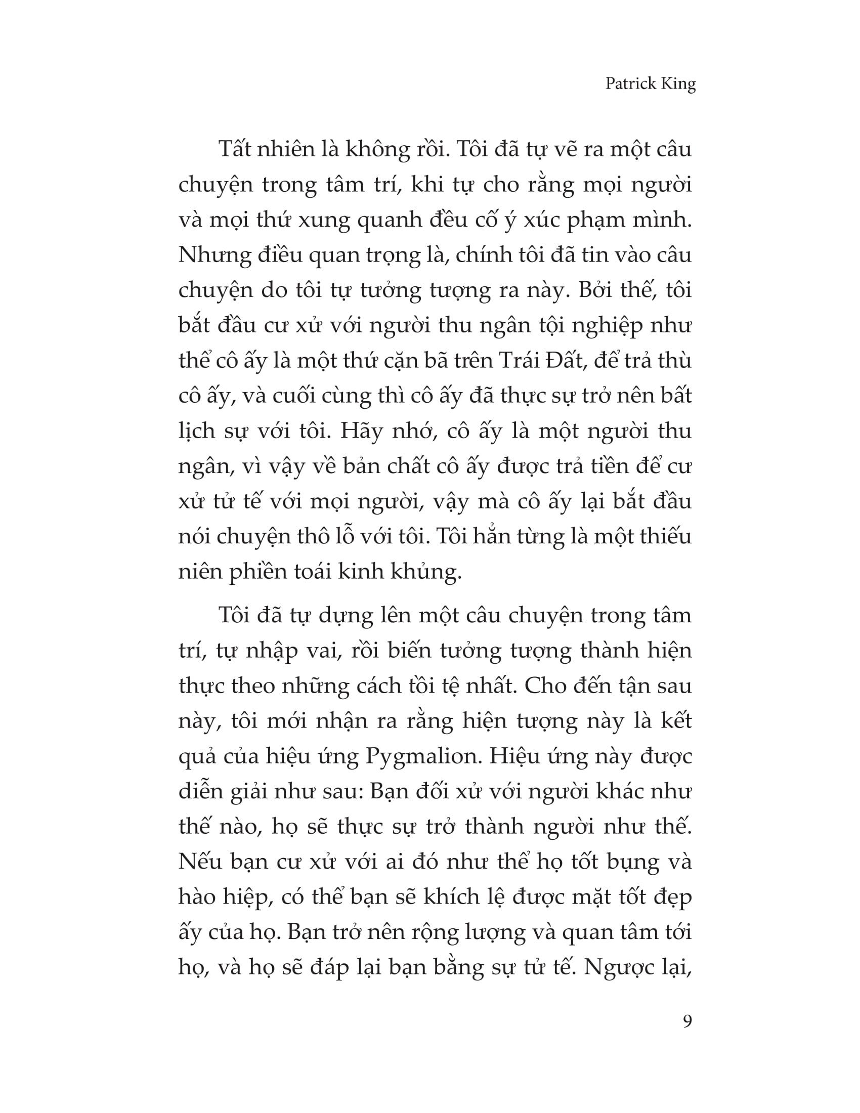 Cuốn sách ngắn gọn của Patrick King cung cấp hàng chục phương pháp để chúng ta trở thành một người được quý mến, tạo ra được ấn tượng tốt trong tâm trí mọi người và khéo léo nâng tầm vị thế của ta trong cộng đồng. Mọi lời khuyên đều dựa trên các cơ sở khoa học rõ ràng và có tính ứng dụng cao, có thể nhanh chóng thực hành và đưa vào mọi tương tác xã hội mà bạn có, ngay từ bây giờ.