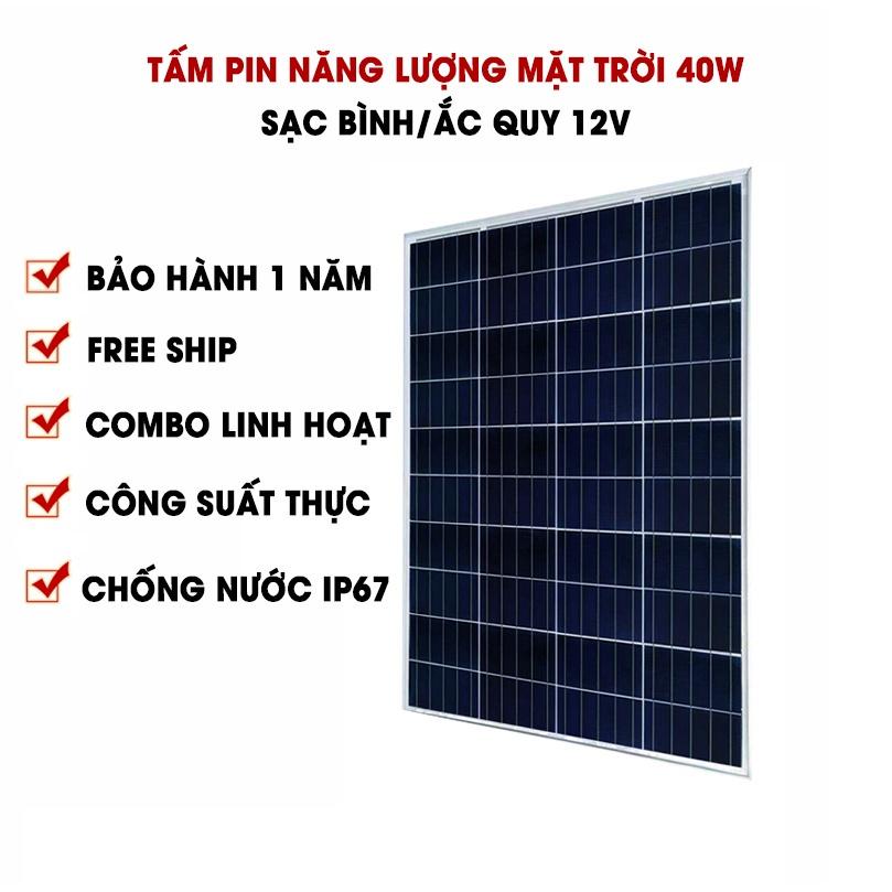 - Một bộ bao gồm: 1 tấm pin năng lượng mặt trời Bạn có thể tùy chọn mua thêm 1 bộ Solar controller để kết nối với ắc quy 12V ️ THÔNG SỐ KỸ THUẬT CỦA SẢN PHẨM ️ Công suất tối đa (PM): 40W Điện áp hoạt động tối ưu (VOC): 17.5 V Dòng làm việc tốt nhất (IM): 2.29 AM Điện áp hở mạch ( VOC): 21.5V Dọng diện ngắn mạch ( ISC): 2.58 AM Dung sai đầu vào: +- 3% Điện áp hệ thống tối đa: 1000 V Áp suất tối đa mà bệ mặt có thể chịu được: 60m/s (200kg/m2) Phạm vi nhiệt độ làm việc từ -40 độ C đến +85 độ C Bảng điều khiển 30A đa tinh thể 40W (540*540mm)THUANBUOMXUOIGIOCảm ơn bạn đã xem sản phẩm của cửa hàng nội thất ô tô của chúng tôi, nơi bạn có thể tìm thấy những sản phẩm nội thất ô tô chất lượng cao và đa dạng. ✓ Chất lượng: Sản phẩm nội thất ô tô của chúng tôi được sản xuất từ nhà cung cấp uy tín, luôn đảm bảo chất lượng hàng đầu. ✓ Đa dạng sản phẩm: Chúng tôi cung cấp nhiều sản phẩm nội thất ô tô, bao gồm ghế da, bọc vô-lăng, thảm lót sàn và nhiều mặt hàng khác. ✓ Đội ngũ chuyên gia: Chúng tôi có đội ngũ chuyên gia giàu kinh nghiệm và kiến thức về nội thất ô tô, luôn sẵn lòng hỗ trợ bạn trong việc chọn lựa và lắp đặt sản phẩm. ✓ Giá cả cạnh tranh: Giá sản phẩm nội thất ô tô của chúng tôi luôn cạnh tranh, mang lại sự hài lòng tối đa cho khách hàng. ✓ Đánh giá sản phẩm: Chúng tôi cung cấp đánh giá và so sánh các sản phẩm nội thất ô tô khác nhau, giúp bạn hiểu rõ hơn về ưu điểm và nhược điểm của từng sản phẩm.