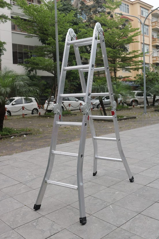 Thang nhôm gấp đa năng hiện đang được rất nhiều người tiêu dùng lựa chọn sử dụng nhiều vào trong các công việc khác nhau. Bởi khi sử dụng chiếc thang này người dùng có thể duỗi thẳng thành hình chữ I nếu cần làm việc ở những độ cao lớn, hoặc gấp lại thành hình chữ U, M, L để tạo thành những thế vững chắc phù hợp với công việc của mình.