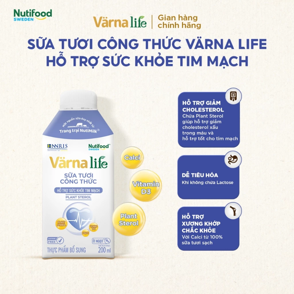 Mua tại TiktokTPBS Värna Life Sữa Tươi Công Thức (Tím) bổ sung Plant sterol giúp kiểm soát cholesterol trong máu, hỗ trợ sức khỏe tim mạch .