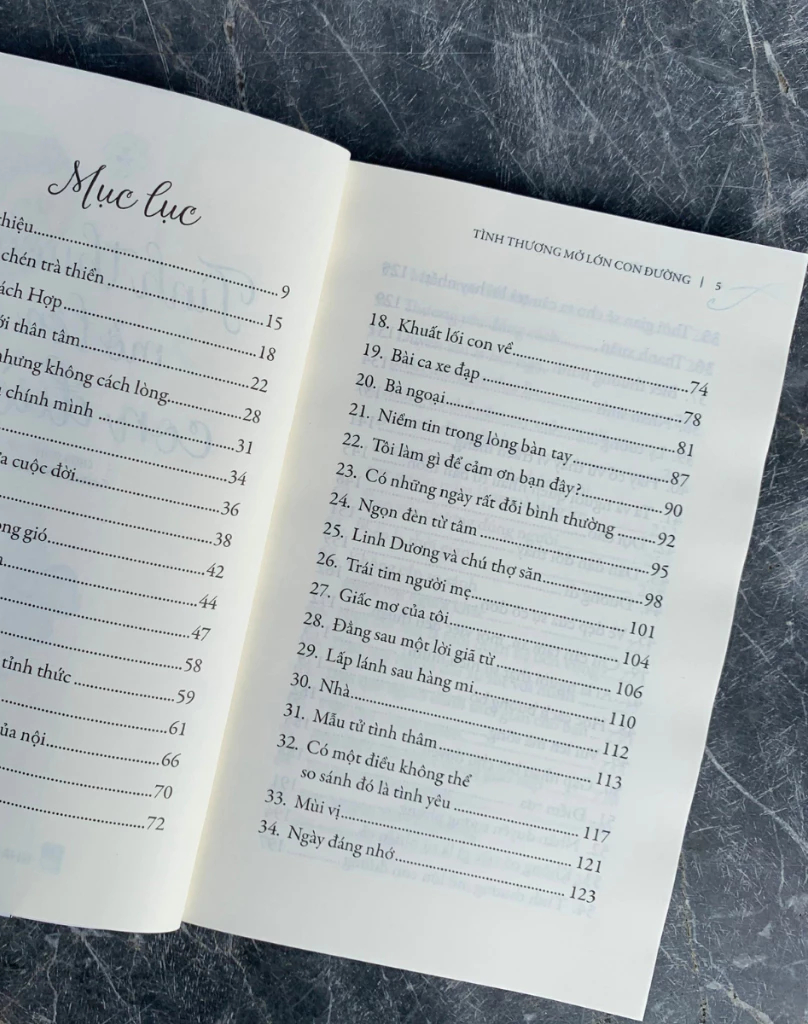 Trong cuộc sống, đứng giữa dòng chảy cuồn cuộn của thời gian, thì liệu rằng có thứ gì có sức mạnh lôi kéo được người ta xích lại gần nhau hơn không? Đó là tình thương, một thứ tình cảm chẳng thể miêu tả một cách dễ dàng hình hài trông như thế nào, nhưng lại được cảm nhận quá đỗi tỏ tường bằng sự đồng điệu nơi trái tim. Tình thương khiến cho người ta trở nên mạnh mẽ đến lạ lùng, hé mở những con đường để cùng vượt qua những khó khăn chông gai… Và đúng như cách xướng tên của cuốn sách, Tình thương mở lớn con đường, tin rằng sẽ chạm được tới sự đồng điệu đó.