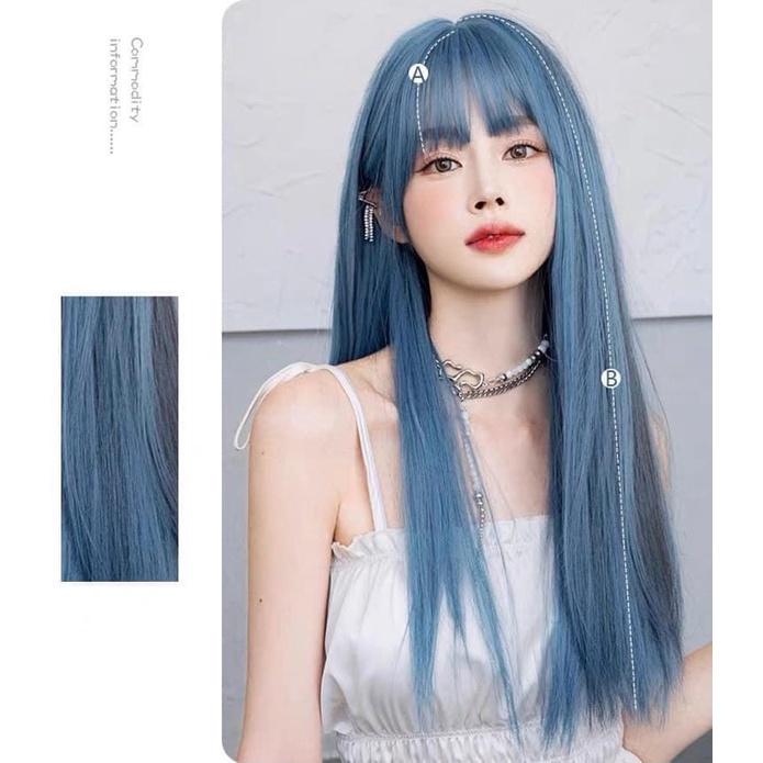 Tóc giả thẳng xanh dương line đenTóc giả thẳng xanh dương line đen