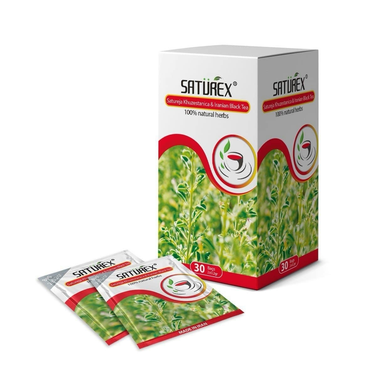 Trà thảo dược (dược trà) Saturex là một sản phẩm độc đáo với sự kết hợp hoàn hảo giữa lá và hoa của thảo dược Satureja Khuzestanica cùng với lá trà đen đặc trưng của Ba Tư. Saturex được sản xuất theo quy trình tiêu chuẩn hóa từ khâu trồng trọt, thu hái, sấy khô cho đến đóng gói, để đảm bảo hàm lượng các chất chống oxy hóa cao nhất.