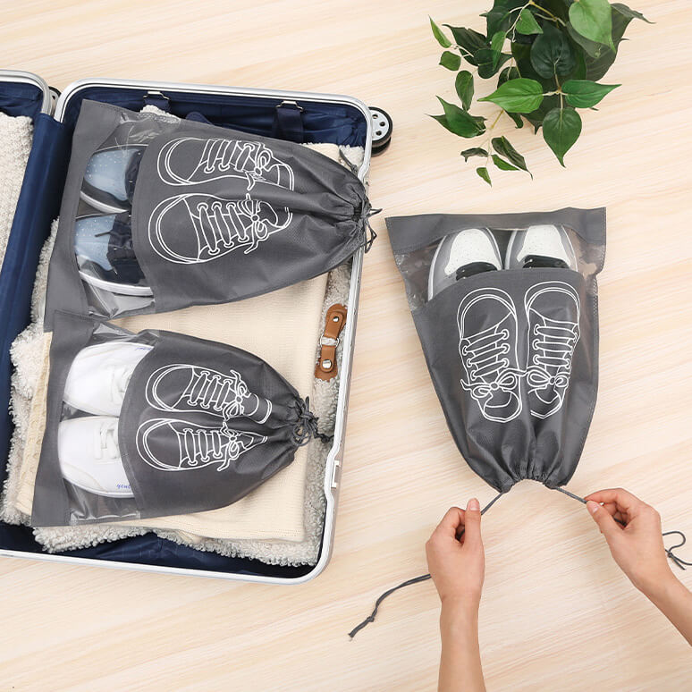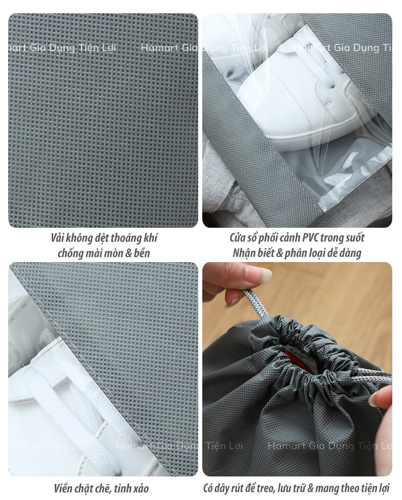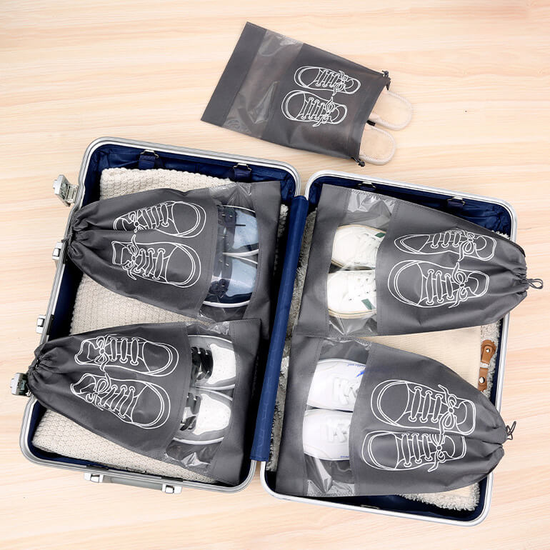 Túi đựng giày dép là giải pháp hoàn hảo giúp bạn có thể sắp xếp gọn gàng và bảo quản tốt cho những đôi giày khi đi xa. Sản phẩm bằng vải không dệt thoáng