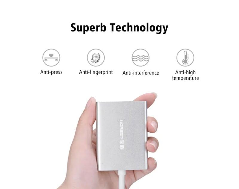 Ugreen 40753 usb 3.0 to tf + sd card readerdual card dual read white cm104 1. Input : USB 3.0 A Male 2. USB 3.0 and compatible with USB2.0 speeds up to 5Gbps 3. Output