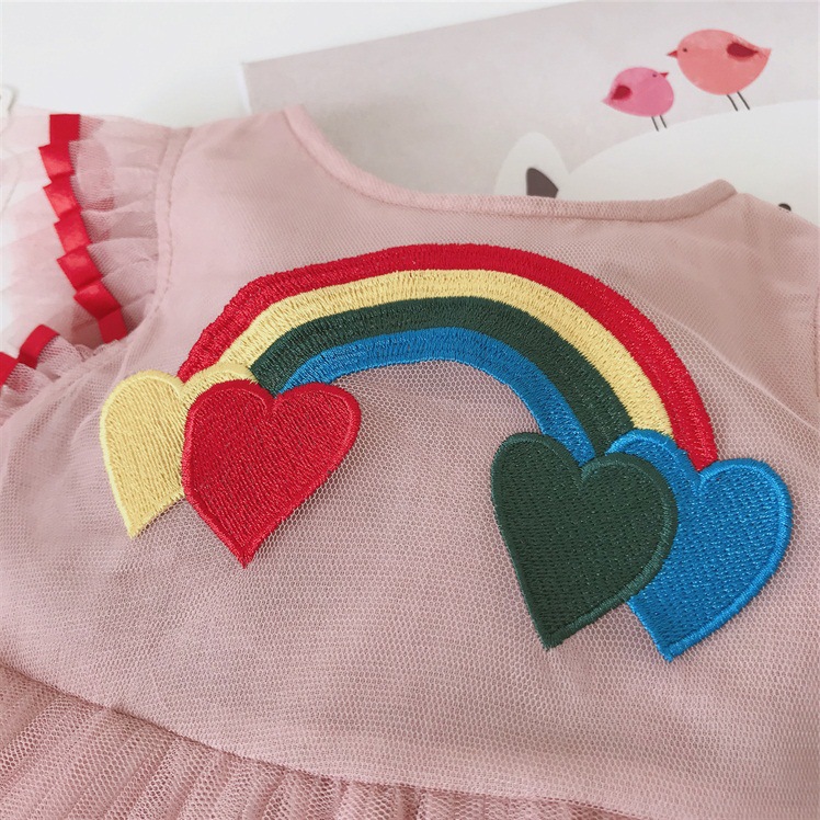 Đầm bồng 3 tầng thêu họa tiết cầu vồng cực xinh cho bé đây ạ.