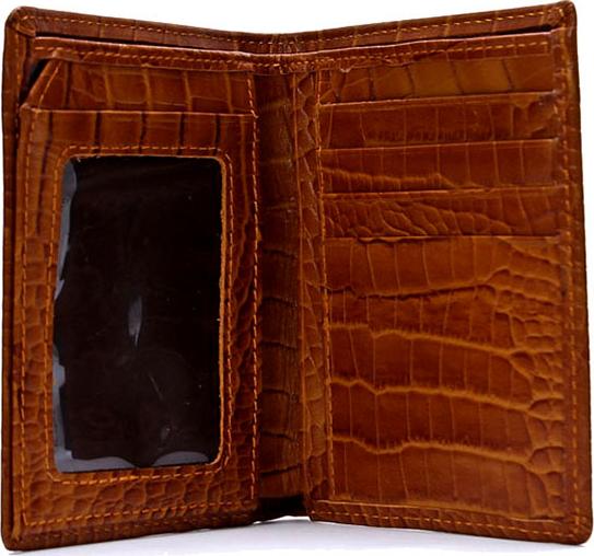Ví/Bóp nam Huy Hoàng da bò vân cá sấu kiểu đứng màu nâu 2121