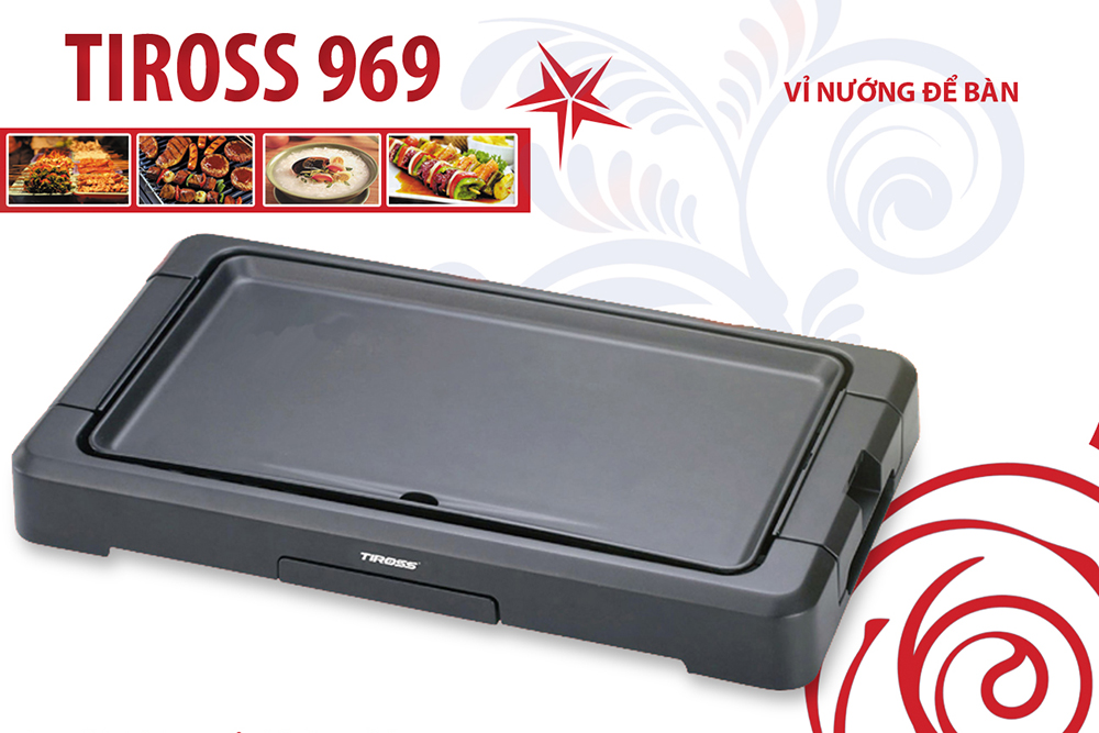 Vỉ nướng điện Tiross TS969 có thiết kế tiện dụng, giúp bạn dễ dàng chế biến các món nướng, chiên, xào mà không mất nhiều thời gian. Mặt vỉ nướng chống dính được làm từ hợp kim nhôm cao cấp, đảm bảo truyền nhiệt tốt đồng thời có tuổi thọ bền bỉ, không bị biến đổi khi tiếp xúc với nhiệt độ cao sau một thời gian dài. Lớp chống dính còn co tác dụng hạn chế dầu mỡ và ngăn thức ăn dính vào mặt nướng, giúp bạn vệ sinh sản phẩm dễ dàng hơn.