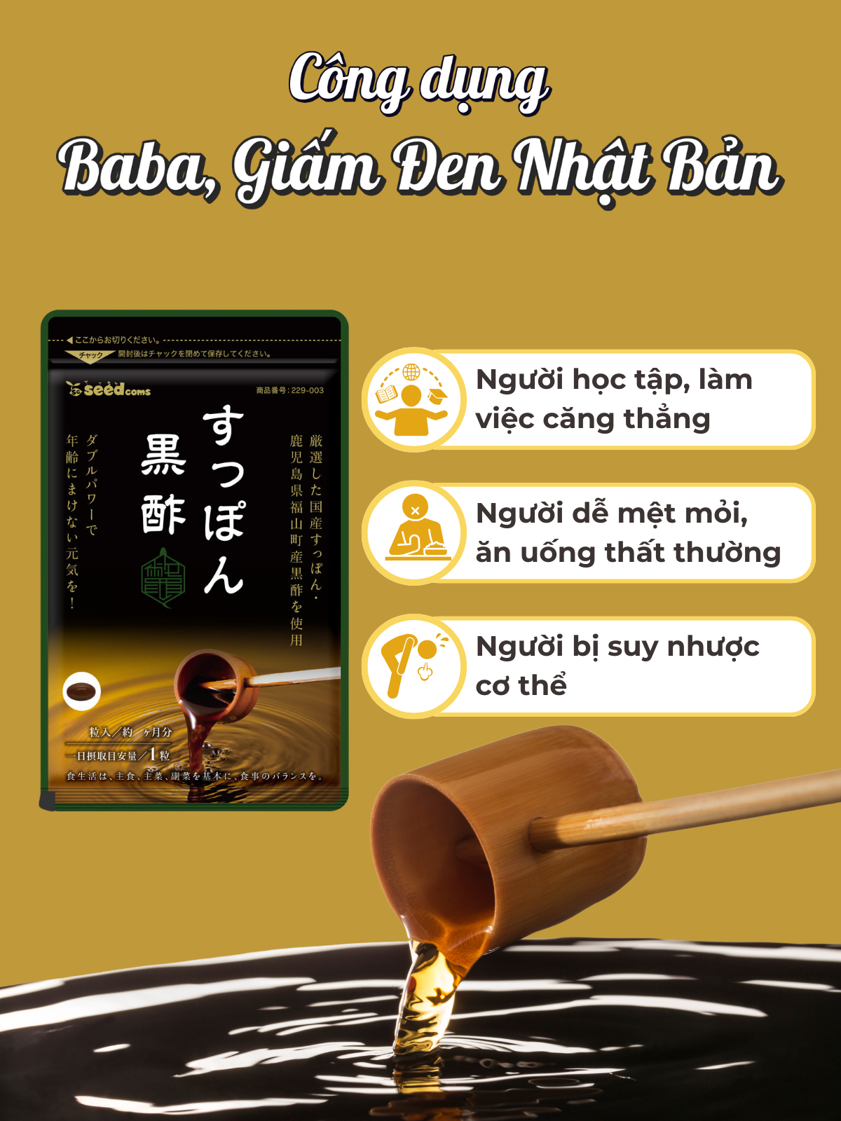 ✨Viên Uống Bổ Sung Baba, Giấm Đen Hỗ Trợ Phục Hồi Sức Khỏe, Giảm Căng Thẳng Mệt Mỏi Seedcoms Nhật Bản
