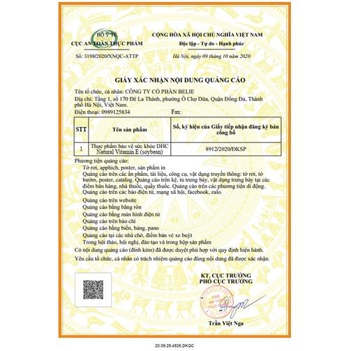 Viên uống Vitamin E DHC Nhật Bản THÔNG TIN CHUNG - Thực phẩm bảo vệ sức khỏe DHC Natural Vitamin E (soybean) có chứa tới 301,5mg vitamin E hoạt tính cao dưới dạng d-alpha tocopherol