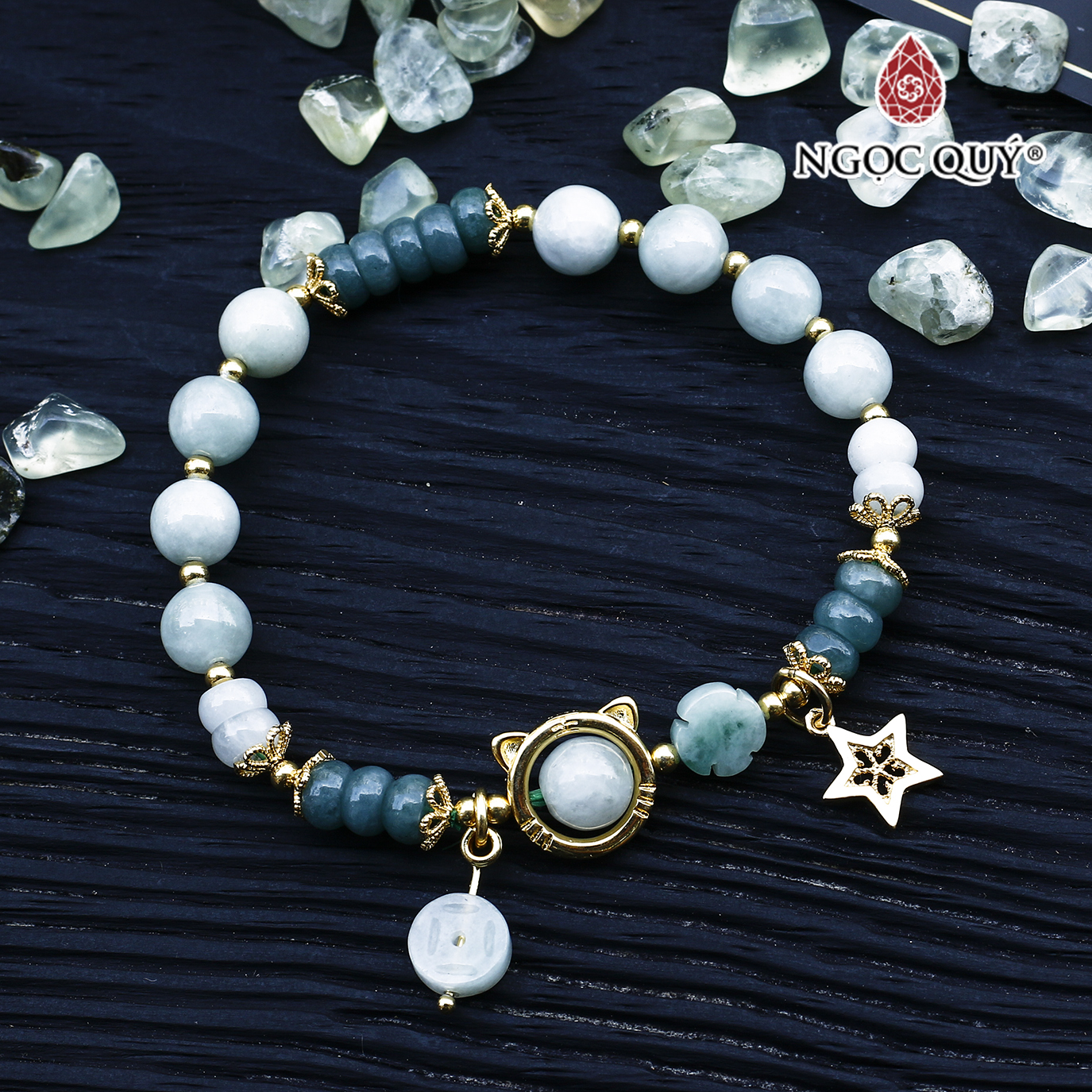 - Vòng Đá Cẩm Thạch Sơn Thuỷ Phối Charm Ngọc Quý Gemstones VT40 - Đá cẩm thạch còn có một tên gọi khác là ngọc phỉ thúy, trong dân gian có truyền thuyết kể rằng đá