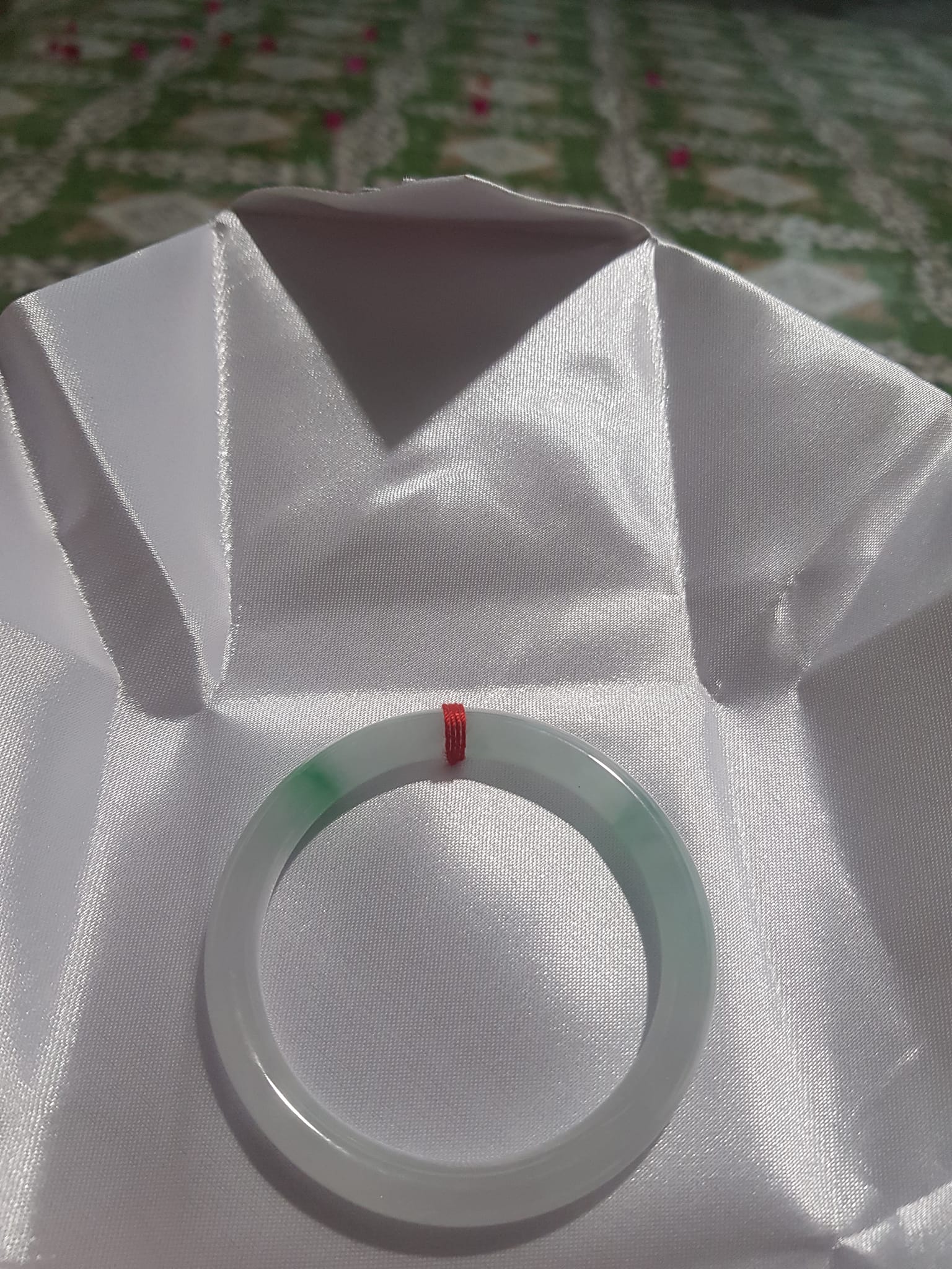 Vòng cẩm thạch tự nhiên Lý A 51mm c7mm Trắng Bóng 2 điểm xanh lý Shop Hàng Phong Thuỷ Sunny Quận 8