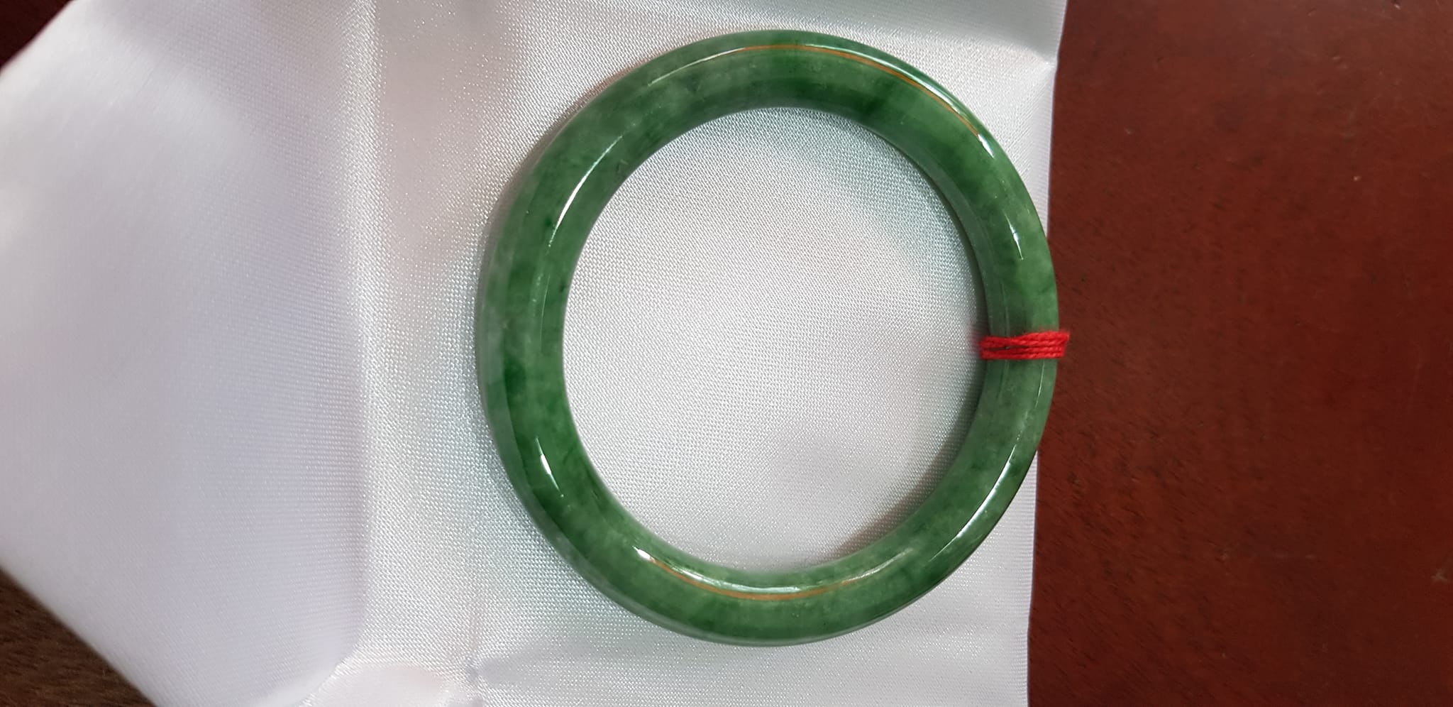 Vòng tay Nữ Đá Cẩm Thạch mới TR Lý 57 mm x cọng 7,5mm Màu Xanh lý tươi trắng 2 bên đều vòng đẹp Nữ 55kg - 64kg đeo đẹp món quà tặng chính mình