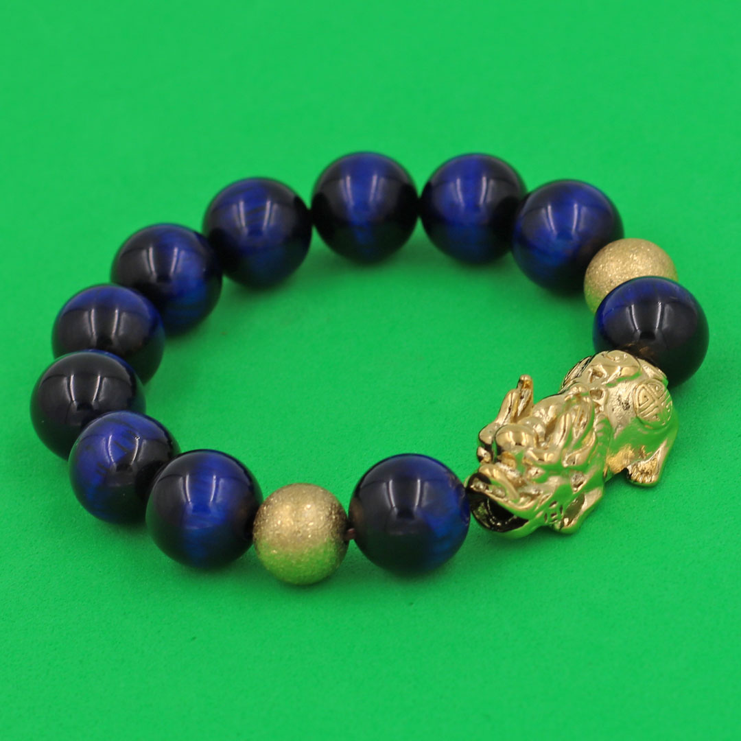 Vòng tay mắt hổ tâm mix charm vàng tỳ hưu - 0931339239