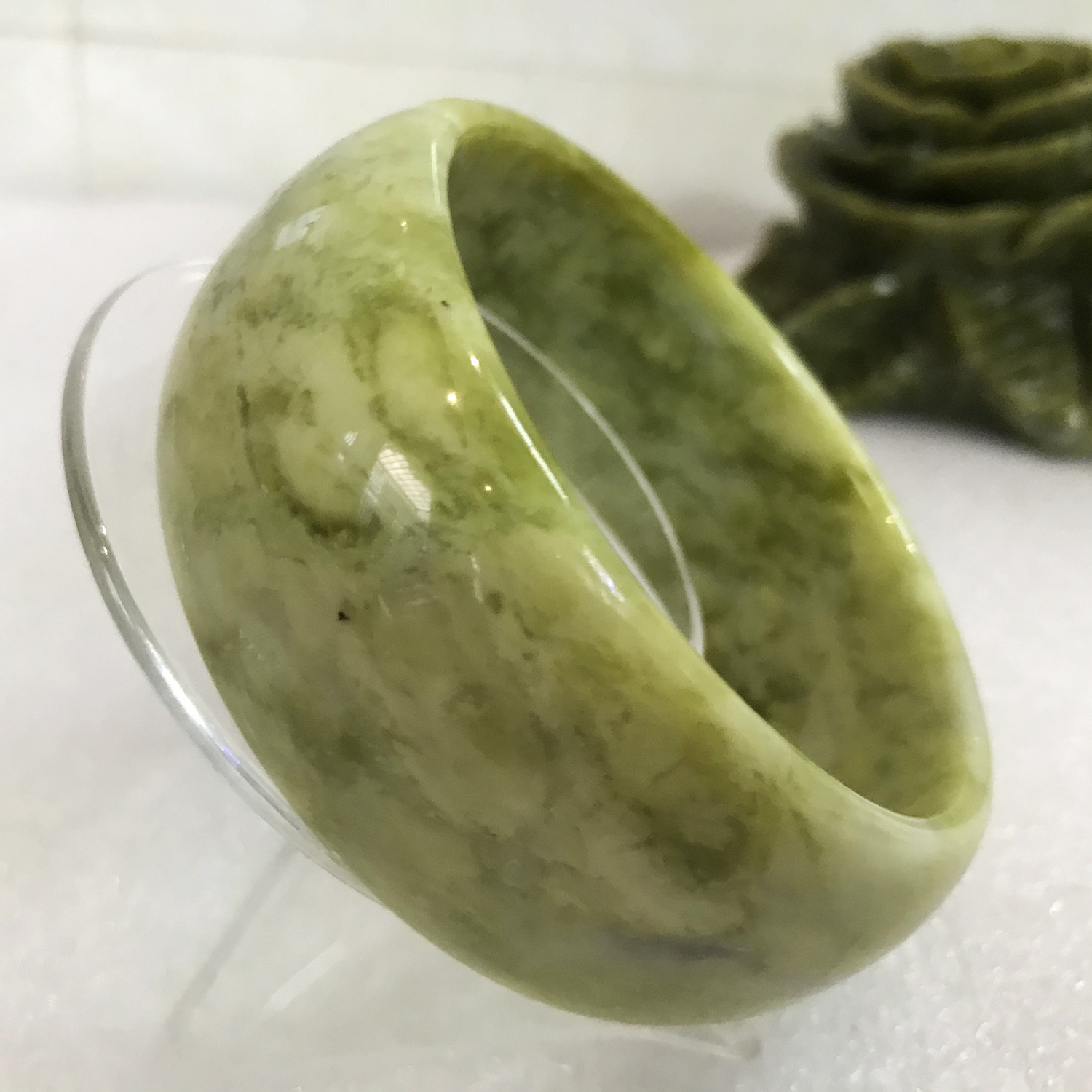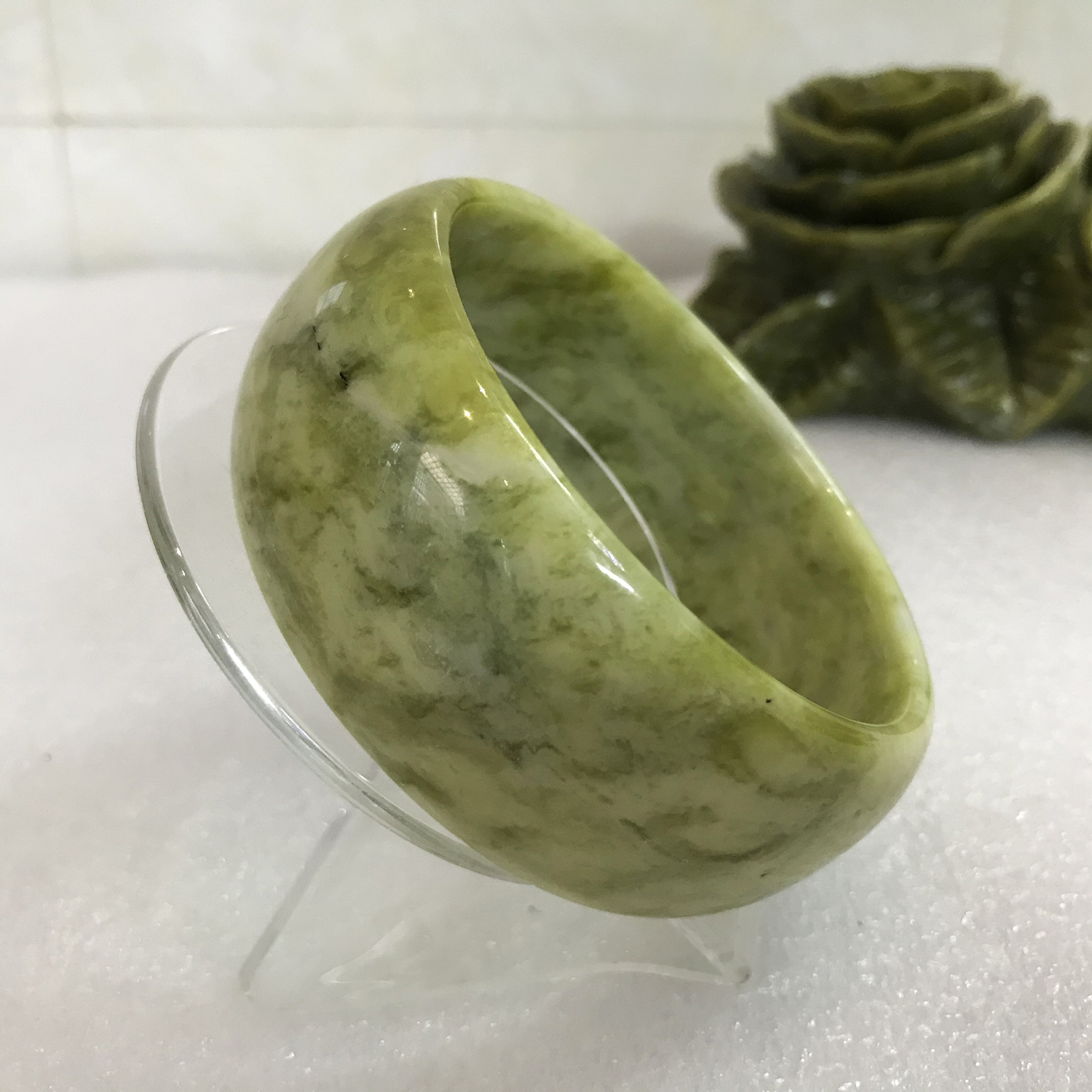 - Kích thước: Size 6.7 cm tương đương với chu vi tay 25 cm. là Bản to hay còn gọi là bản cao đến 3cm, chắc nặng, dày và mát tay, rất độc đáo , tất cả là hình chụp thật, không chỉnh sửa , bên ngoài màu sáng và bóng hơn trong hình. Còn cũng có nhiều size và nhiều màu khác từ đá ngọc thật