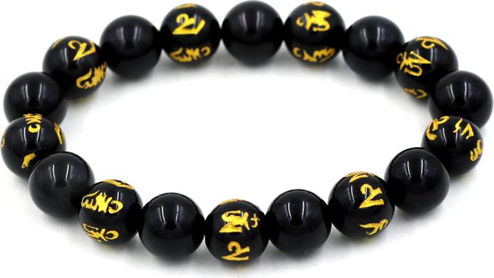 Vòng chuỗi gồm sự kết hợp giữa thạch anh đen mạ-vàng "lục tự kim ngôn" và thạch anh đen, là sản phẩm Phật giáo mang ý nghĩa an khang.