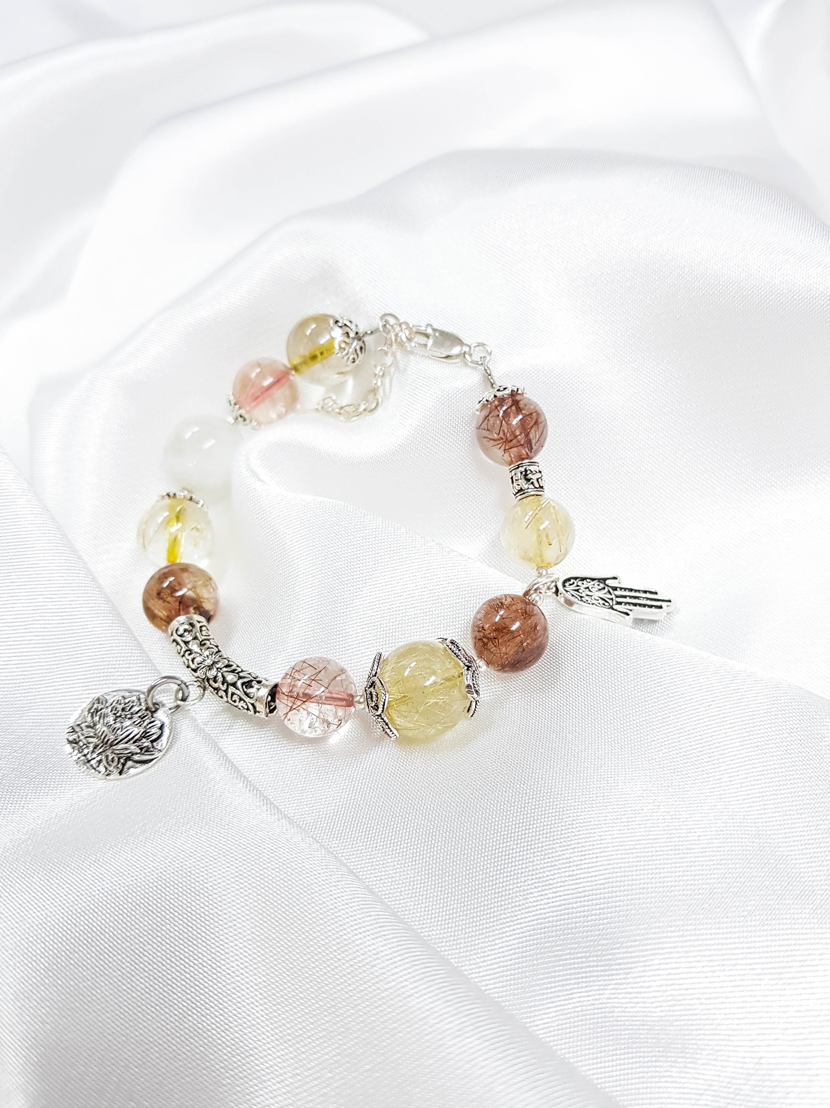 - Vòng Tay Laliz Mệnh Thổ, Kim Đá Thạch Anh Tóc Nâu Mix Thạch Anh Ưu Linh Charm Bạc - TAR.12 được làm từ loài đá tự nhiên kết hợp Bạc 925, không chỉ là