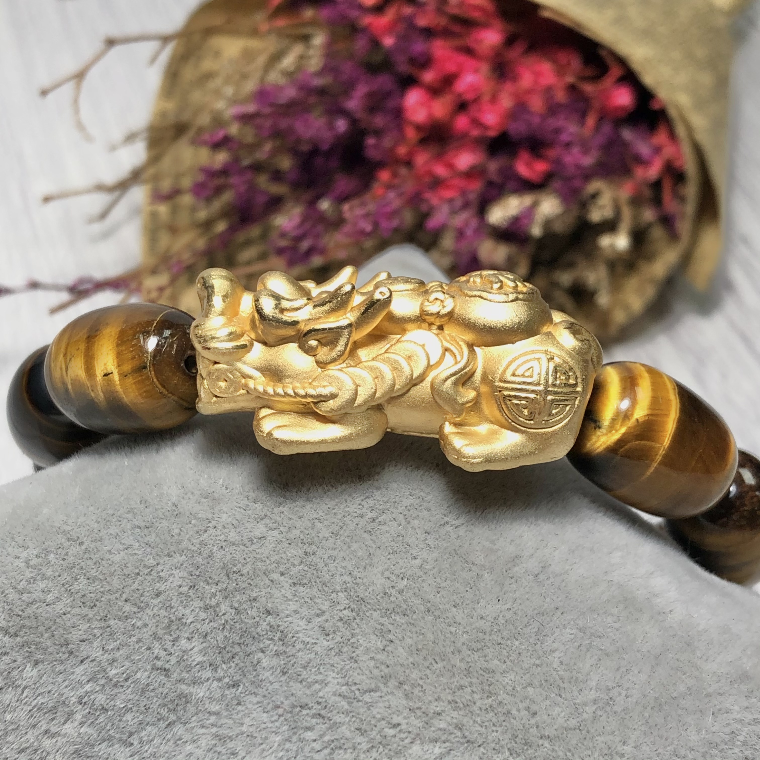 Vòng đá mắt hổ vàng nâu mix tỳ hưu và 1 hạt kim tiền bạc I Ý nghĩa của đá mắt hổ trong phong thủy