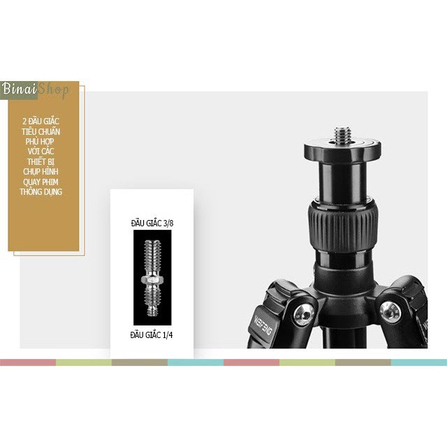 - Thiết kế phù hợp với mọi thiết bị chụp hình với 2 đầu giắc ren xoáy chuẩn 3/8" và 1/4".