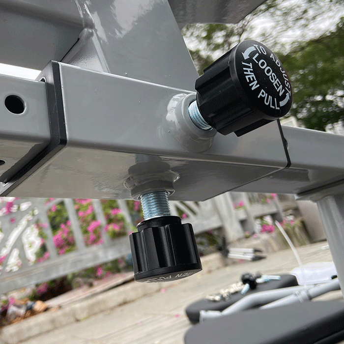 Model: E-02 Chất liệu: Thép chịu lực cao cấp Khối lượng: 29/32 kgs Kích thước sử dụng: 115 x 53 x 110cm Kích thước đóng thùng: 97 x 23.5 x 86cm Tải trọng: 120kg Bánh
